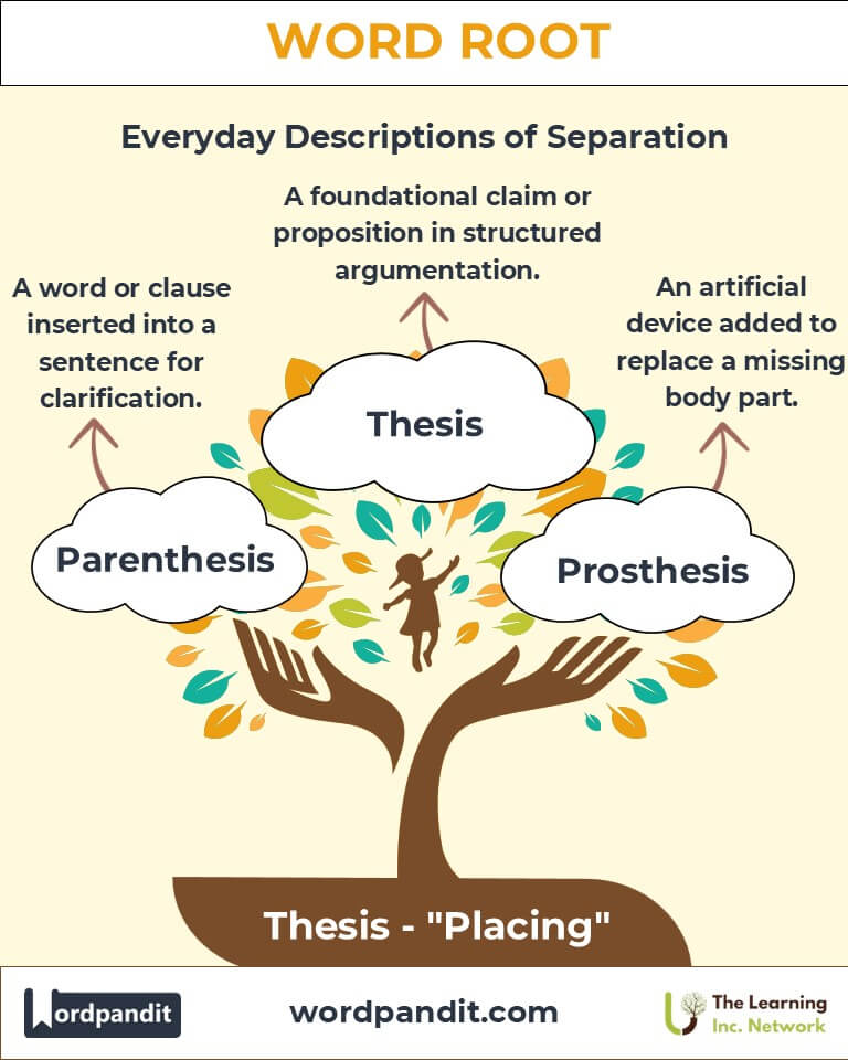 The root "thesis" continues to shape our understanding of placement and structure in thought and expression. Its versatility enriches fields as diverse as science, philosophy, and linguistics, reminding us of the importance of positioning in the pursuit of knowledge. By exploring "thesis," we celebrate the enduring human quest to place ideas meaningfully within the world.