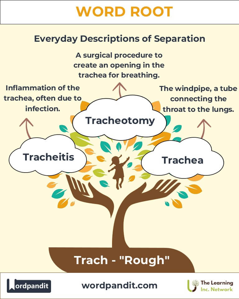 Discover the fascinating role of the word root "Trach," derived from the Greek word "trachys," meaning "rough." From the vital trachea in our respiratory system to conditions like tracheitis, this root is central to understanding medical and anatomical terms that focus on essential bodily functions.