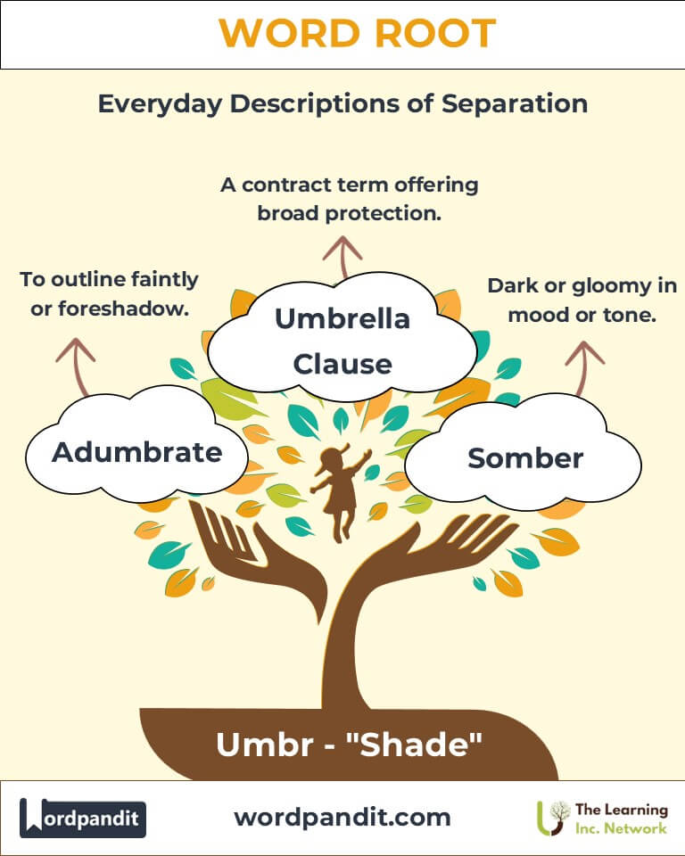 Picture a shady grove on a hot summer day or the comforting canopy of an umbrella during a storm. These vivid images stem from the Latin root "umbr", pronounced "uhm-br," meaning "shade." This root forms the foundation of words that express physical protection and emotional undertones. Whether shielding from rain or alluding to metaphorical shadows, "umbr" enriches language with depth and versatility.