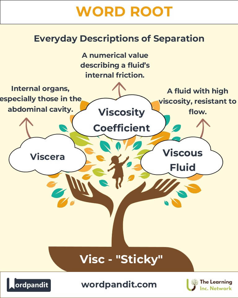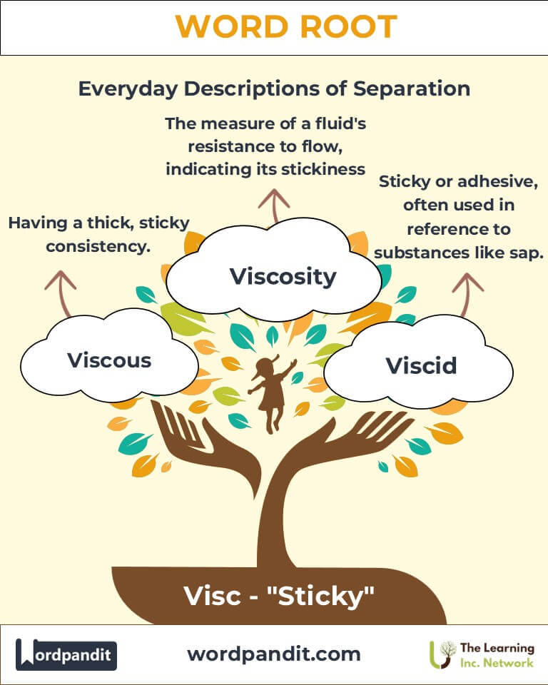 Discover the fascinating world of the root "Visc", derived from Latin, meaning "sticky." From scientific applications like viscosity to everyday terms describing thickness and flow, this root underscores the dynamics of cohesion and adhesion in both language and nature.