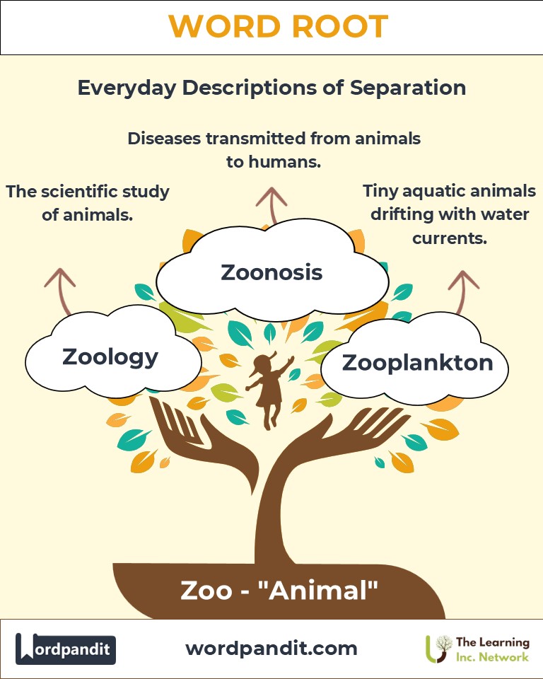 Discover the fascinating "Zoo" root, originating from the Greek word zōion, meaning "animal." From zoology to zoomorphic, this root reveals the dynamic relationship between humanity and the animal kingdom, shaping our understanding of life and its many forms.